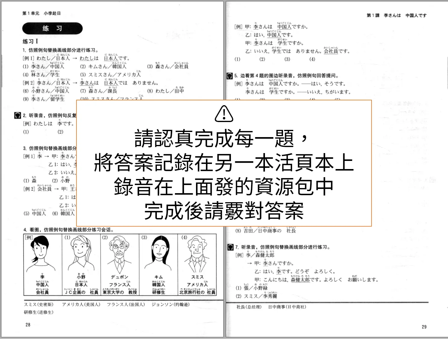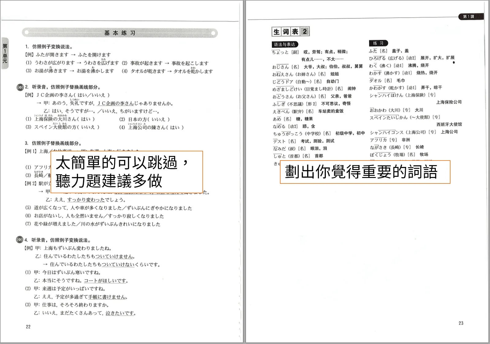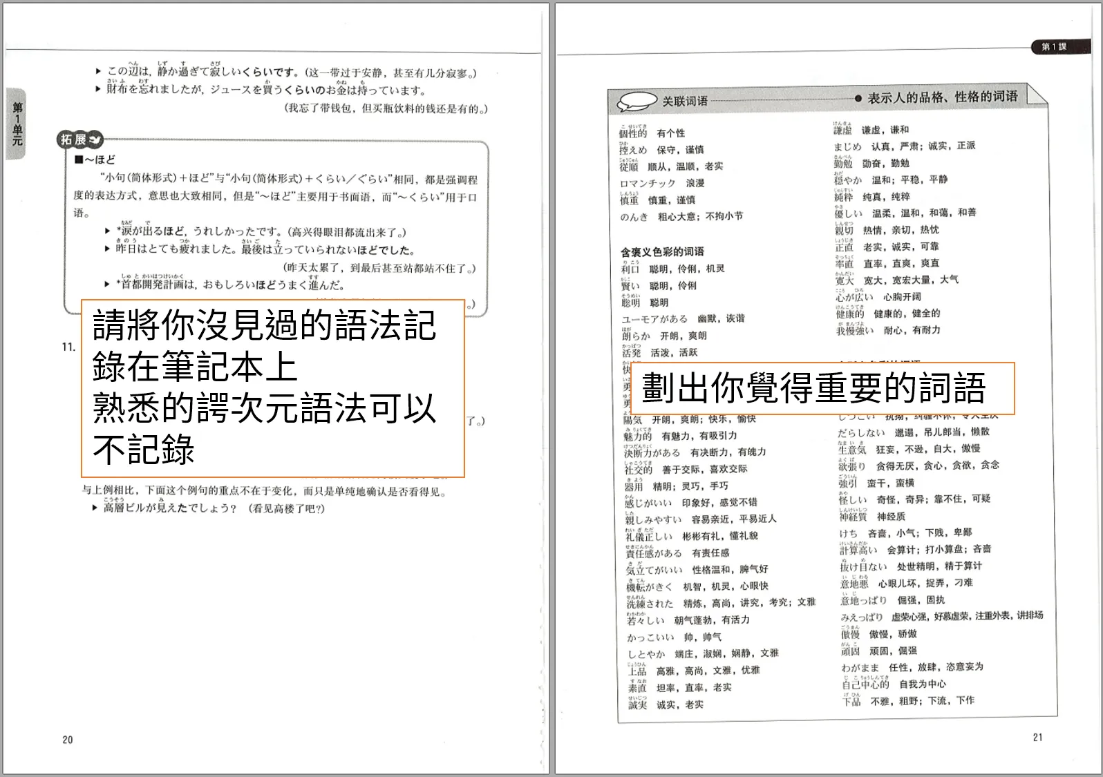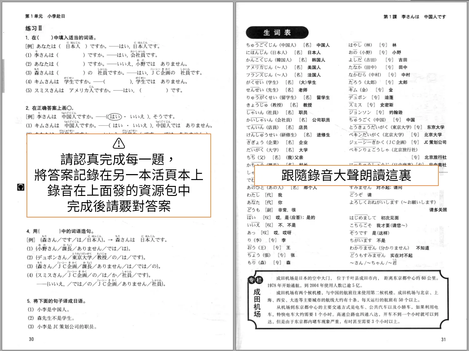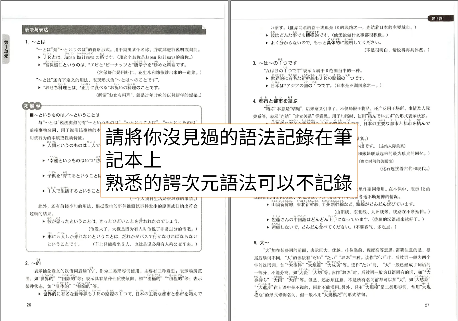 一本用來記錄你的筆記,一本用來做 新標準日本語教材 的課後習題。