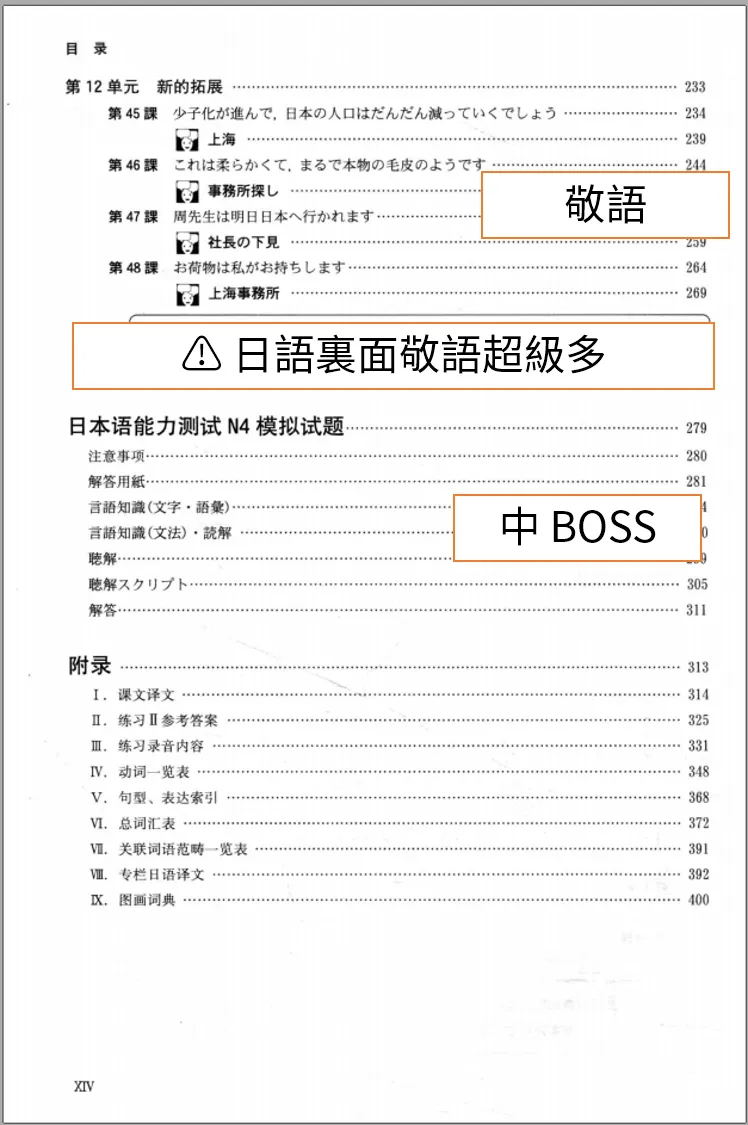 課文結束後,請完成書附的 N2 模擬題(大 Boss)。