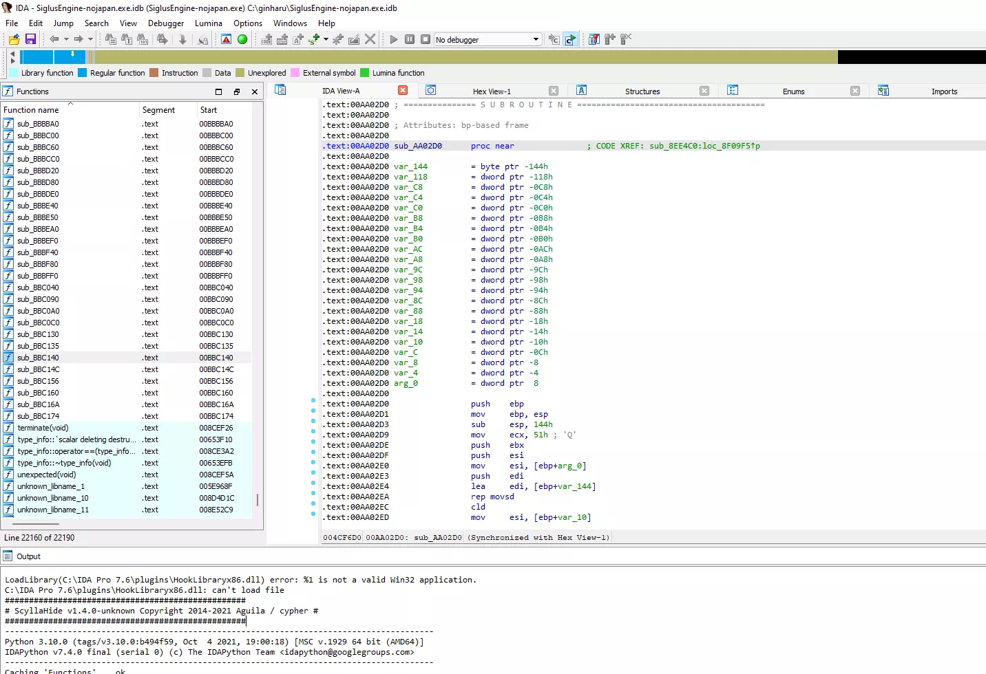 然後把 exe 拖進去(這裏是已經破解過地區驗證的 exe,名叫 SiglusEngine-nojapan.exe),會顯示下圖。