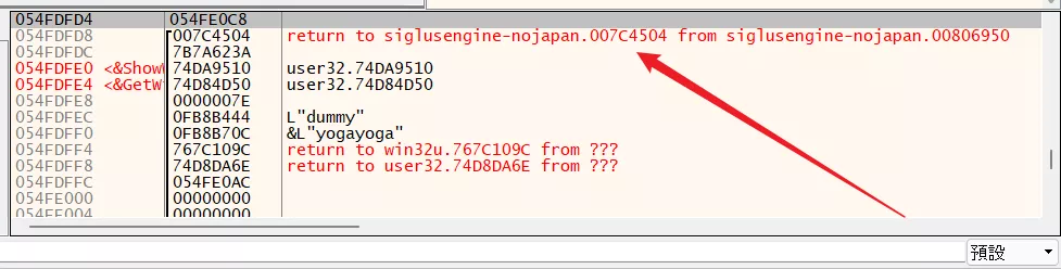 接下來要找到外層函數,其實方法很簡單,回到 x64dbg,直接看調用堆棧就行了。