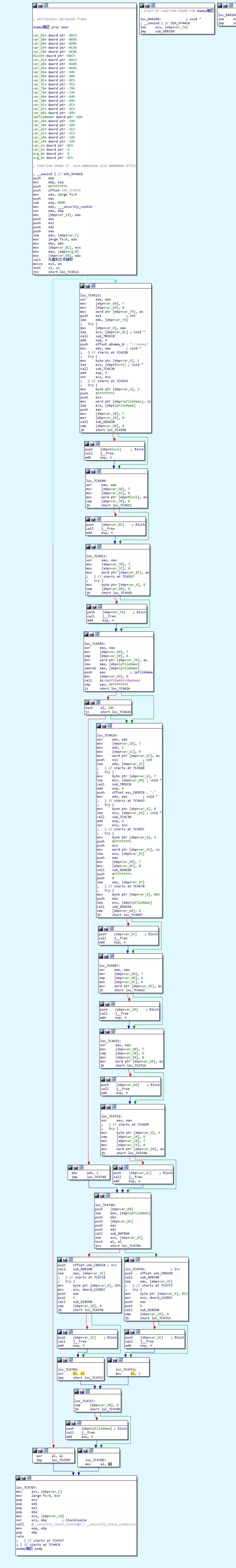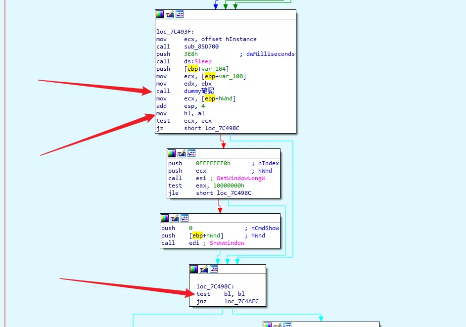 發現 dummy 測試完成后會返回 7C4967,在 IDA 打開這個地址。