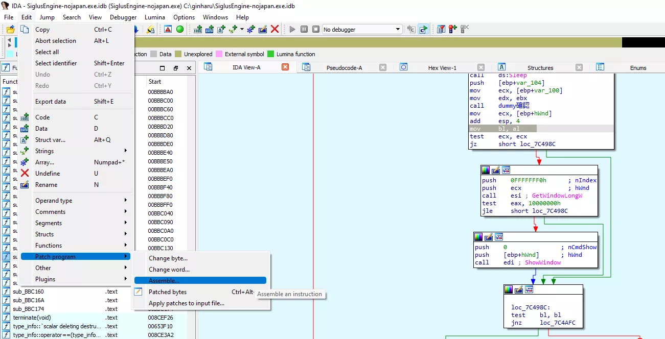 IDA 選定那一行,點彙編,輸入我想要的指令: